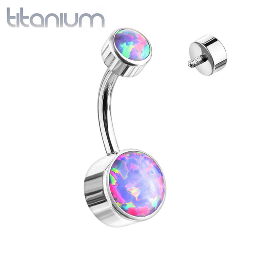 Internally Threaded Grade Titanium Bezel Purple Opal Belly Ring