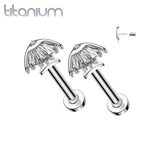 Pair of Implant Grade Titanium White CZ Large Butterfly Threadless Push In Earrings With Flat Back