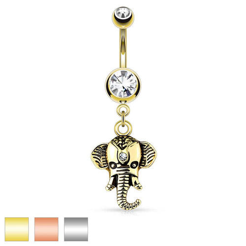 Surgical Steel Gold Plated Vintage Elephant Belly Button Navel Ring