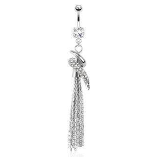 Surgical Steel Swirl Long Tassel Belly Button Navel Ring Dangle