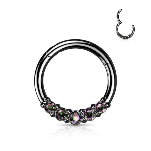 316L Surgical Steel Black PVD 5 VM CZ Gem Dainty Septum Ring Hinged Clicker Hoop