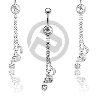 CZ Gem Paved Musical Music Note Surgical Steel Belly Button Navel Ring