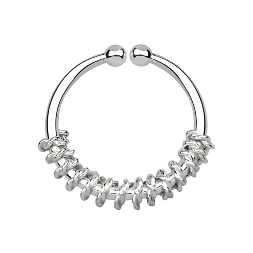 Fake Faux Clip On Tribal 925 Sterling Silver Wire Nose Hoop Ring