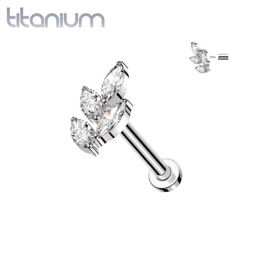 Implant Grade Titanium Large White CZ Marquise Leaf Threadless Push In Labret