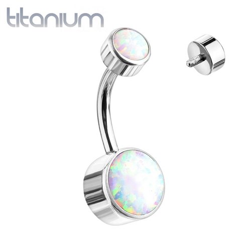 Internally Threaded Grade Titanium Bezel White Opal Belly Ring