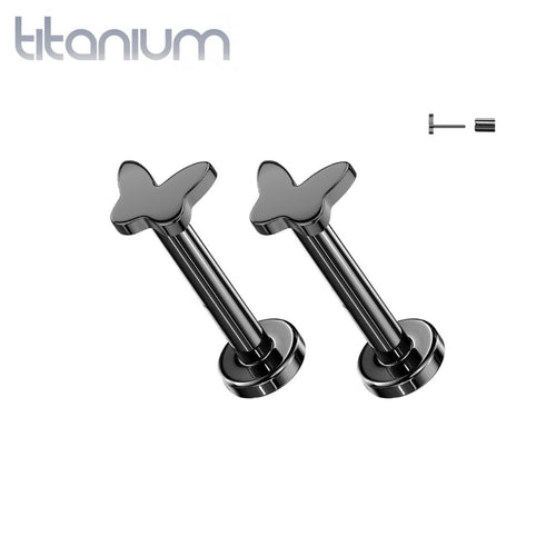 Pair of Implant Grade Titanium Black PVD Threadless Butterfly Push In Earrings With Flat Back