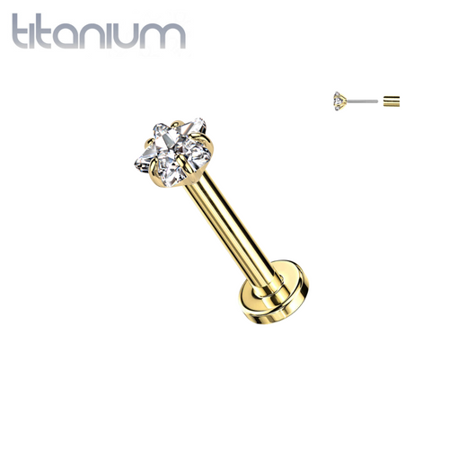 Implant Grade Titanium Gold PVD White CZ Star Shaped Gem Threadless Push In Labret With Flat Back
