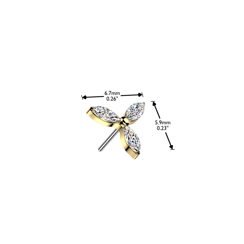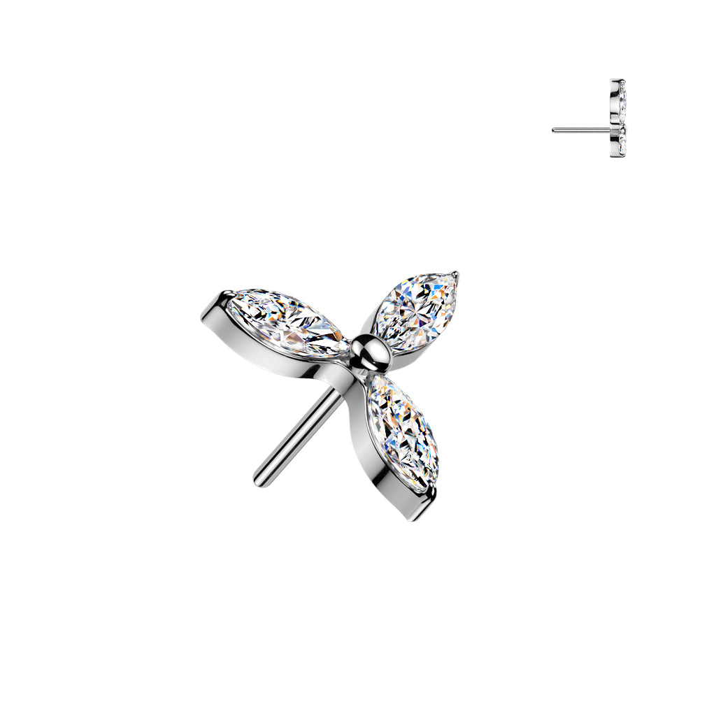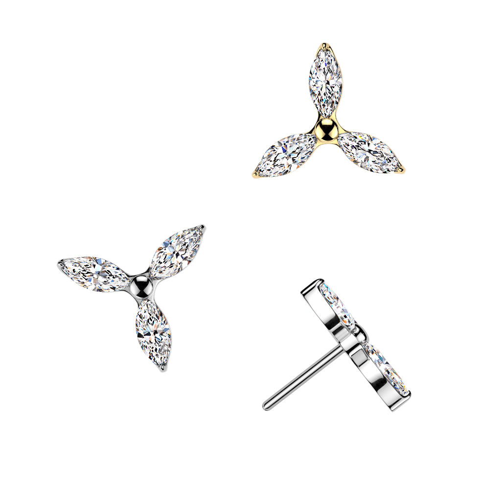 This Threadless Implant Grade Titanium Labret is perfect for any piercing. It has a Threadless cz trillium flower top. It also comes in a variety of bar lengths. These are easy to put in and secure so it doesn't fall out.